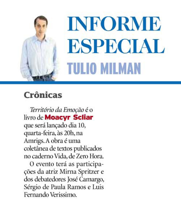 Na última quarta, a convite da Judith Scliar, participei do lançamento da antologia de crônicas médicas, Território da Emoção. Encontrei no escritor-médico, a mesma humanidade, o humor e a forma de tramar as palavras.