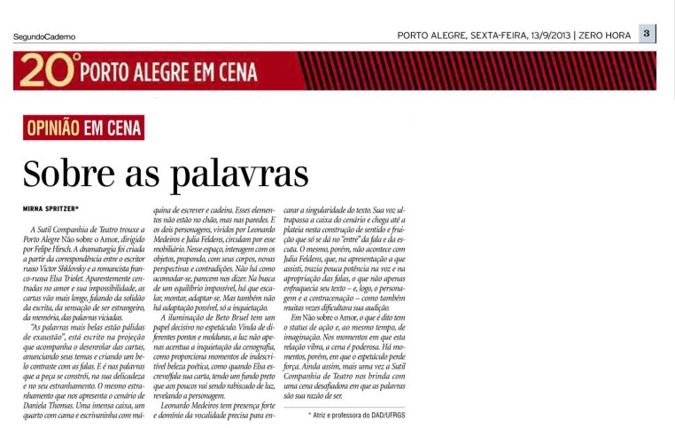 Não sobre o amor em ZH de hoje 13 sexta-feira set 2013 Tamanho original em 2224 × 1411 ≈ Deixe um comentário