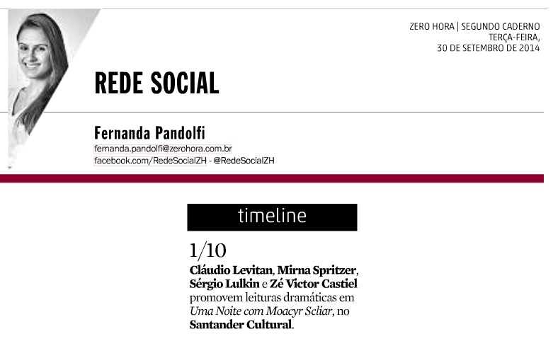Uma Noite com Moacyr Scliar em Zero Hora de hoje