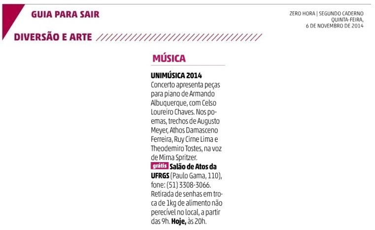 É hoje! Unimúsica na imprensa 06 quinta-feira nov 2014 Tamanho original em 944 × 579 ≈ Deixe um comentário