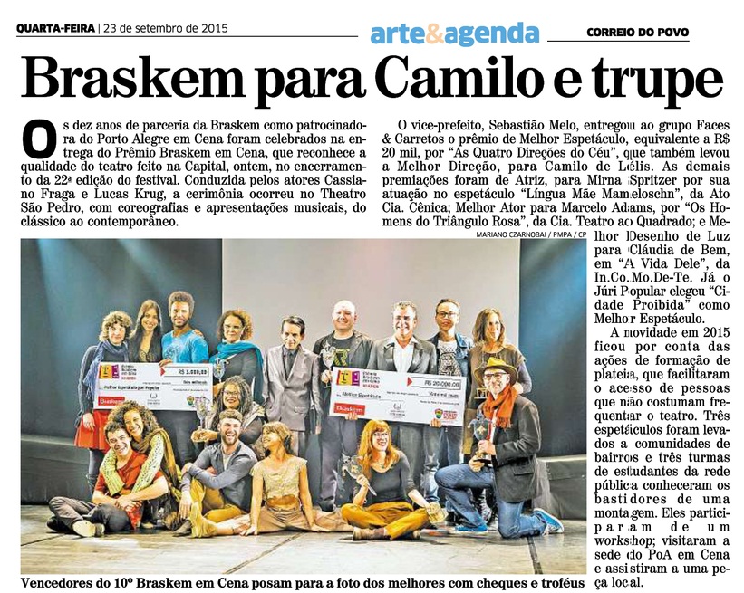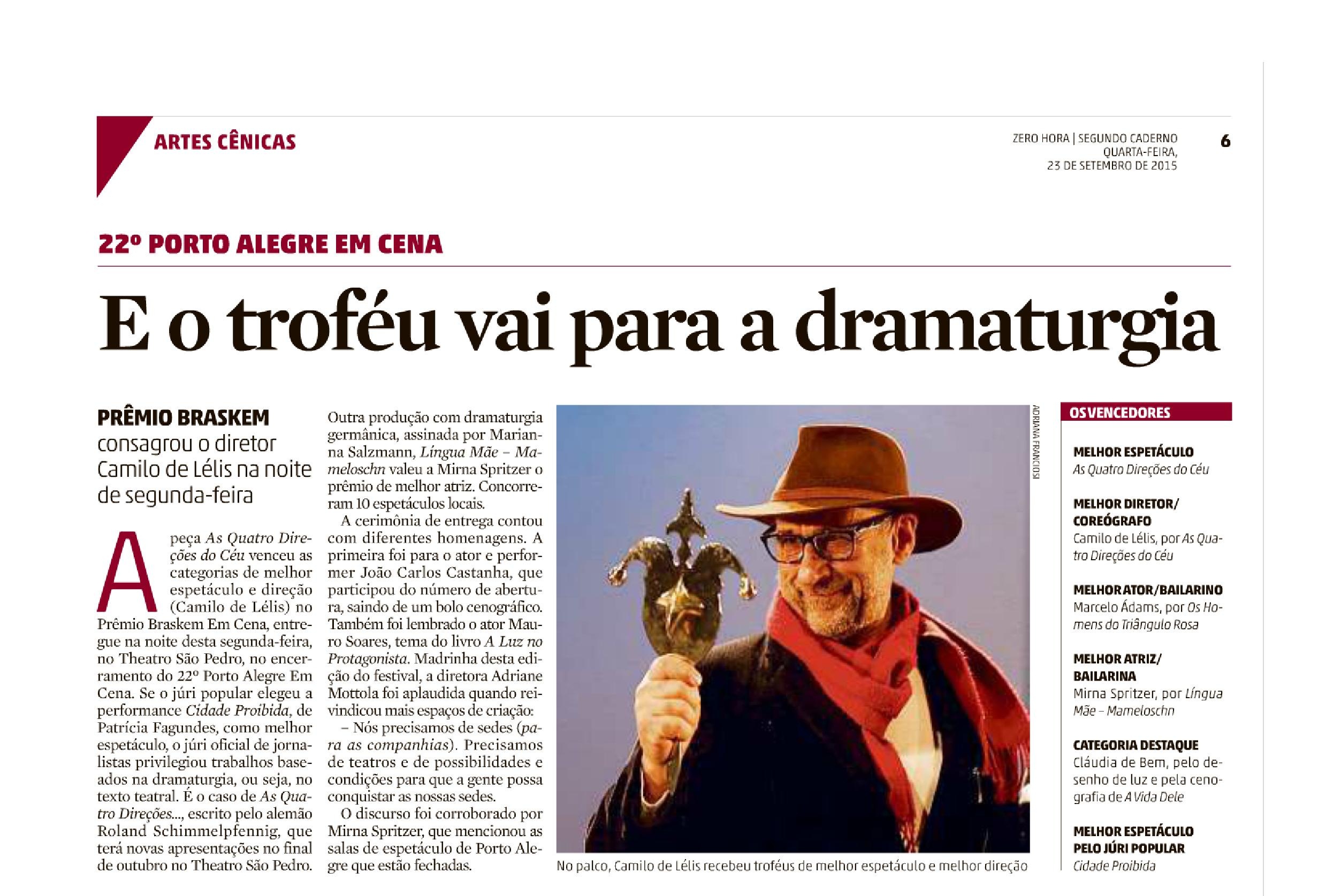 Correio do Povo, Jornal do Comércio, Língua Mãe.Mameloschn, Mirna Spritzer, Porto Alegre em Cena, Prêmio Braskem Em Cena 2015, Zero Hora